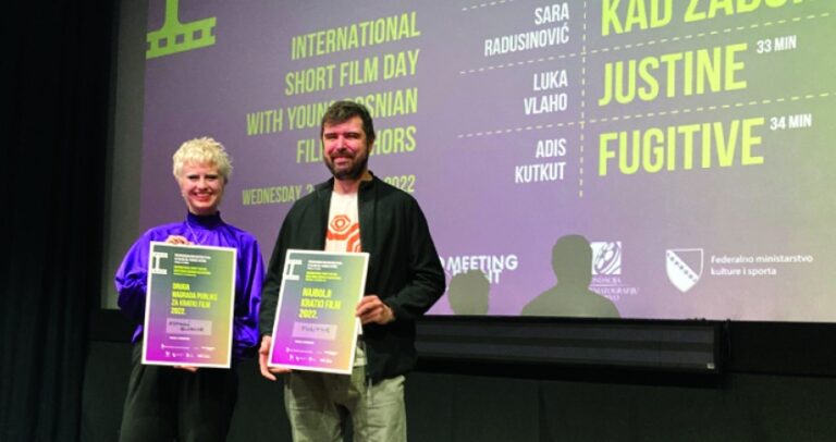 Udruženje filmskih radnika u suradnji s kinom Meeting Point je tradicionalno proslavilo Međunarodni dan kratkog filma. Odlukom publike, Nagradu za najbolji kratki film 2022. dobio je film FUGITIVE Adisa Kutkuta, a Drugu nagradu publike dobio je film KOMADIĆ SLOBODE Sare Ristić. Nagrađenim filmovima plakete i novčane nagrade je uručila predsjednica Udruženja filmskih radnika Elma Tataragić.
